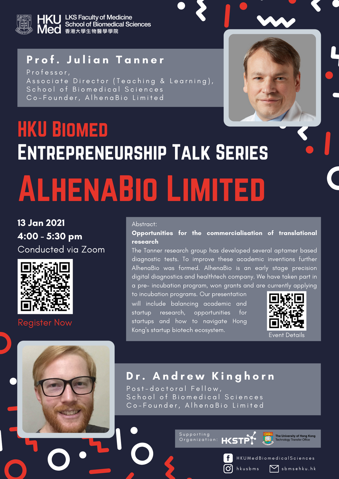 For biography of each speaker and the talk abstract, please visit: http://www.sbms.hku.hk/event/hku-biomed-x-hkstp-entrepreneurship-talk-series