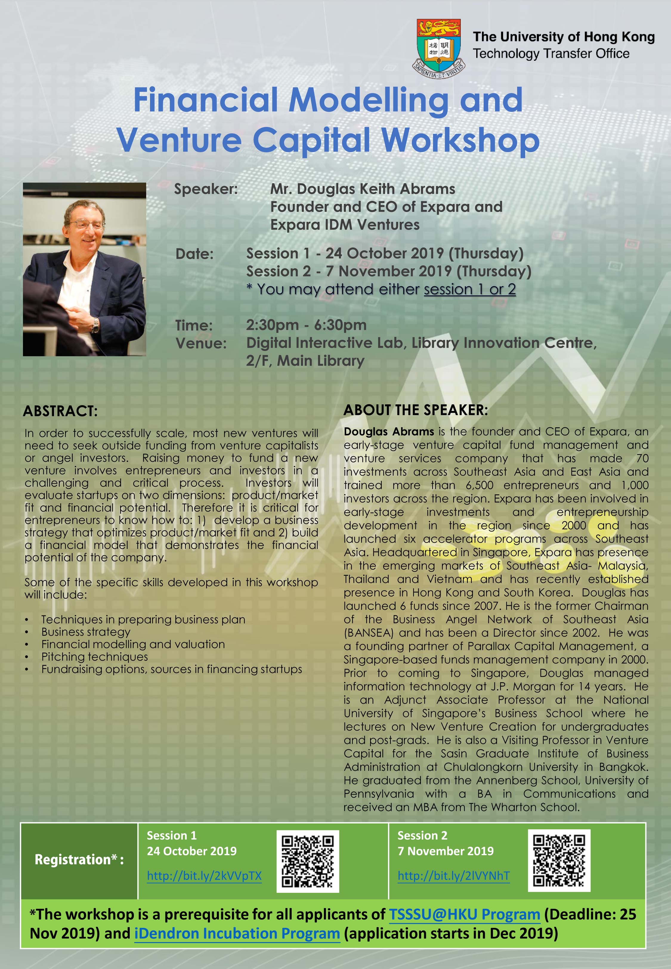 *The workshop is a prerequisite for all applicants of TSSSU@HKU Program (Deadline: 25 Nov 2019) and iDendron Incubation Program (application starts in Dec 2019).
