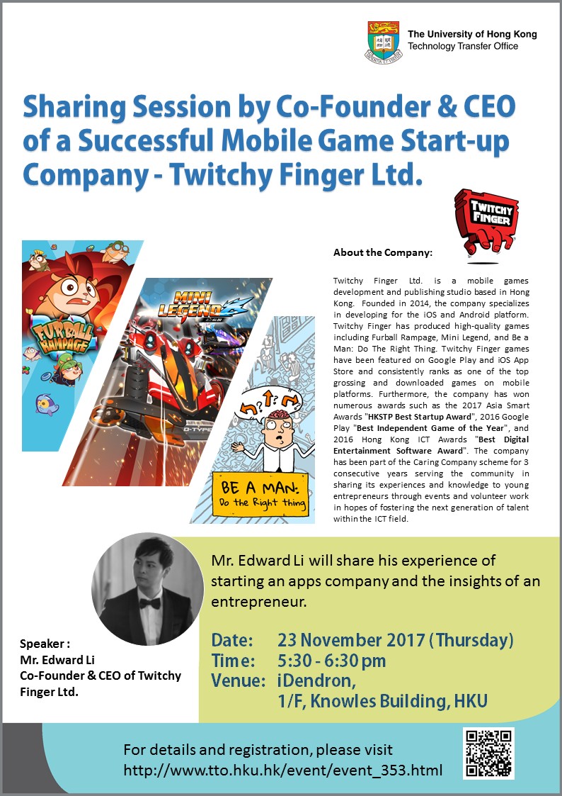 Sharing Session by Co-Founder & CEO of a Successful Mobile Game Start-up Company - Twitchy Finger Ltd