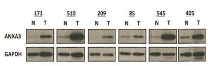 - The endogenous and secretory ANXA3 is preferentially expressed in HCC patients. Functional studies also found ANXA3 to play a critical role in driving HCC initiation, angiogenesis, invasion, metastasis and chemoresistance. ANXA3 can be used as a serum biomarker for the diagnosis of HCC.