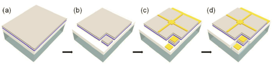 - Monolithic integration approach – Both LED and micro-photodetector are printed as a unit by a single photolithography step (Fig 1). Easy to adopt.