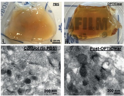 OPTIClear is a novel tissue clearing agent and it works by selectively adjusting the optical properties of tissue while leaving the structural components unchanged, minimizing tissue damage while achieving high tissue transparency. It is composed of three core components: (1) a homogenizing agent; (2) a cytoplasmic, water-soluble refractive index adjusting agent and (3) a membrane, lipid-soluble refractive index adjusting agent.